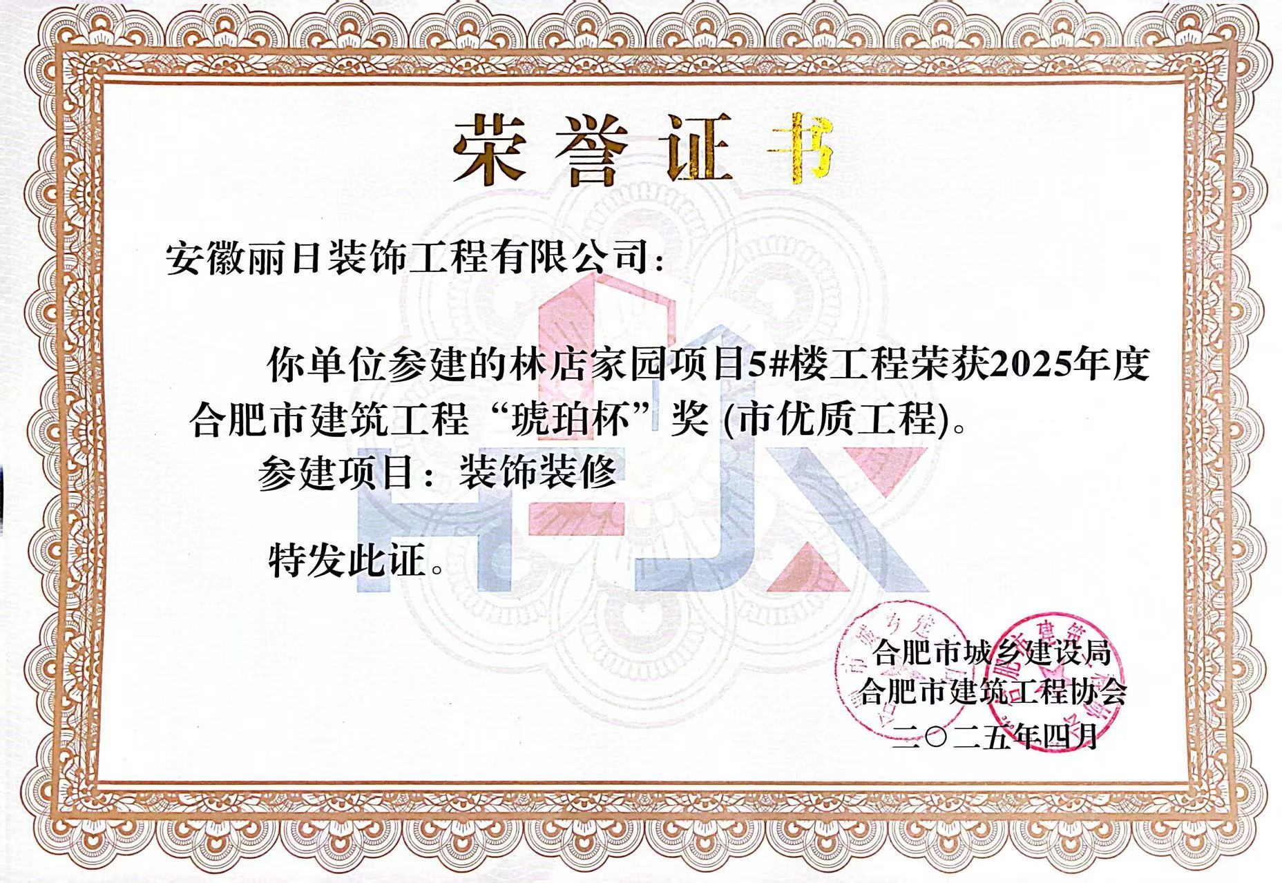"琥珀杯“荣誉证书